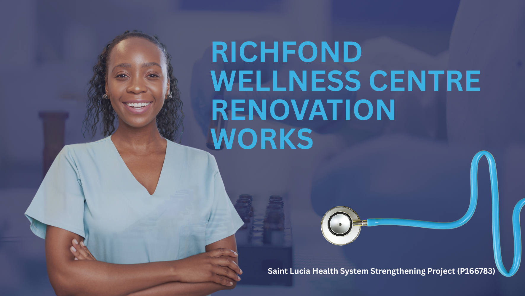 The project will undertake the renovation of the existing Richfond Wellness Centre. Richfond also called the Valley, is a northern community in the Dennery district. The Richfond Wellness Centre is located on a slight elevation on the western periphery of the community bordering the Castries to Vieux Fort Highway, the main thoroughfare which links the districts along the eastern side of the island to Castries. A minor road which will serve as the main access for construction vehicular traffic links the Centre, to the highway.